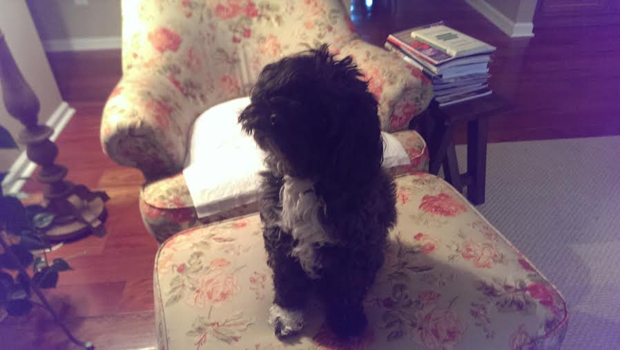 Each night, after I return with the big dogs from our romp down the road, I gently wake my geriatric cockapoo who sleeps nestled in fleece blankets on my red Parisian sofa. She’s black with tuxedo markings and a single white paw. Clover is small and mighty, still the alpha of the pack after all these years.